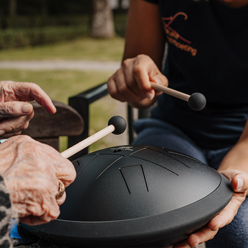 Een-op-een aandacht heeft een andere kwaliteit dan samen in een groep. Bij de Persoonlijke Muziekmomentjes zoeken we de verdieping in het contact op. Soms is er behoefte aan gesprek, maar vaak is het samenzijn het belangrijkste.