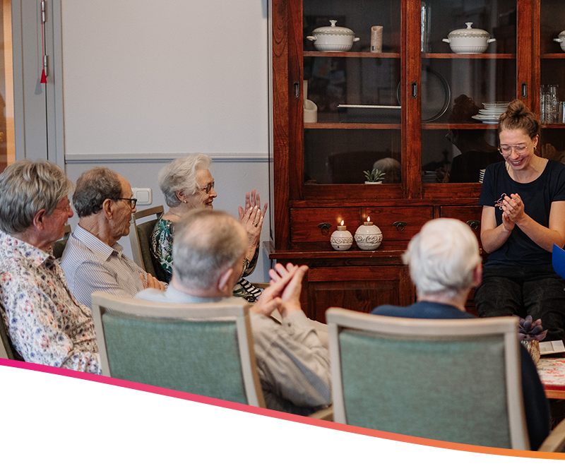 In de huiskamers zingen we daarom rustige, vrolijke en herkenbare liedjes waarbij mensen zich veilig en geborgen kunnen voelen en minder onrust ervaren.