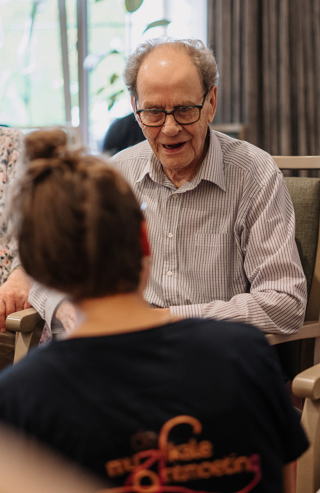 Tijdens Muzikale Ontmoetingen op de somatiek afdelingen is er tussen de liedjes door ruimte voor korte gesprekjes en het delen van herinneringen als daar behoefte aan is.